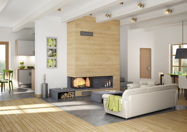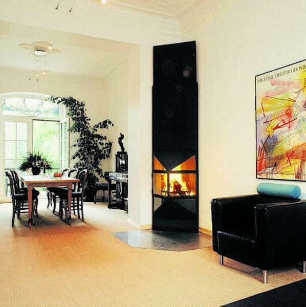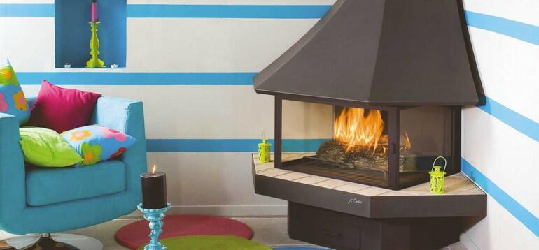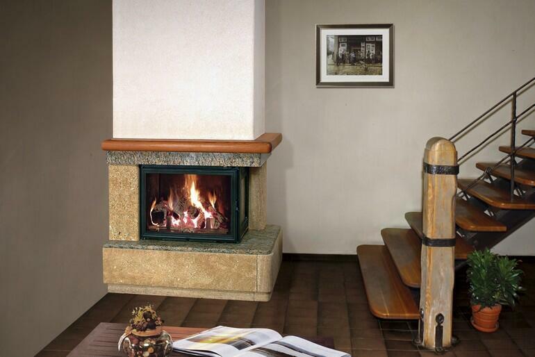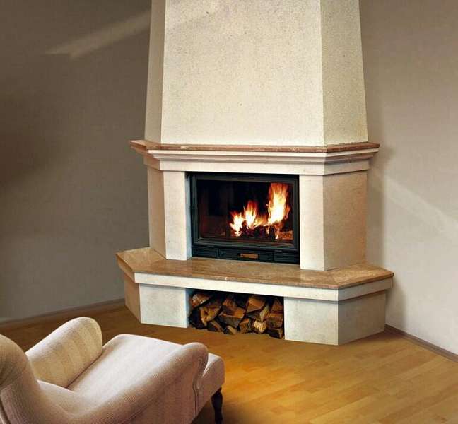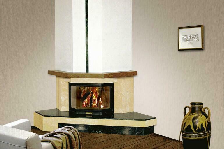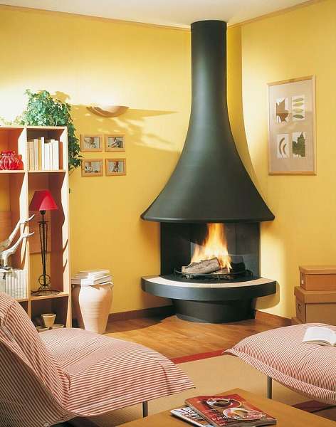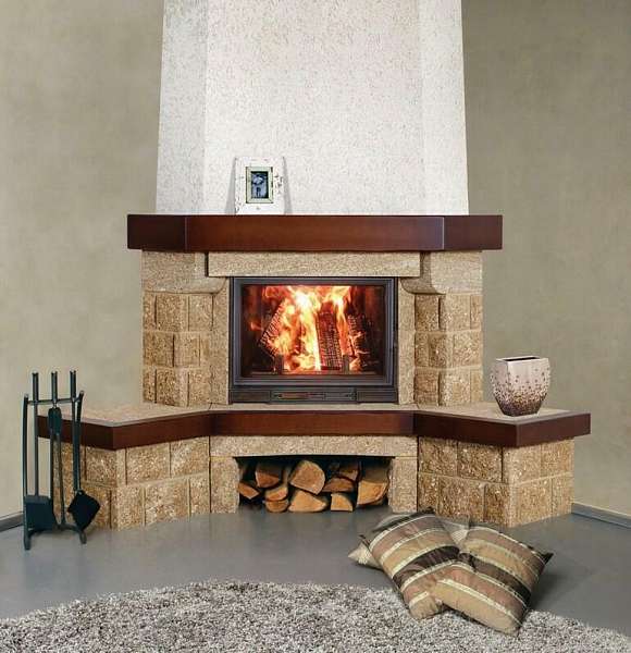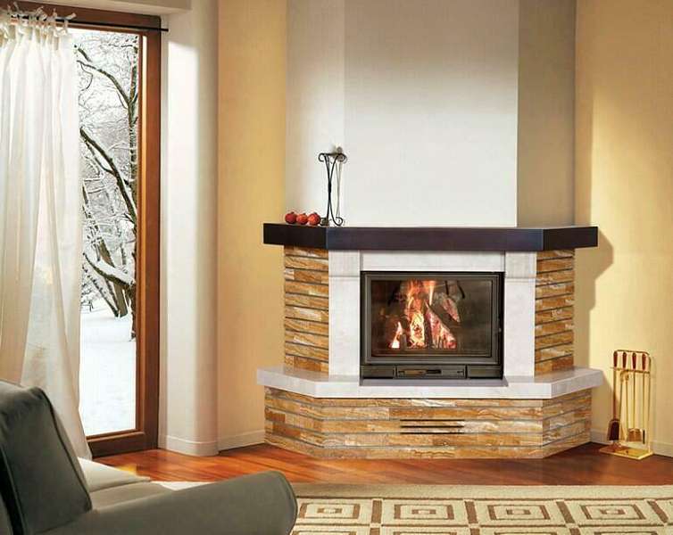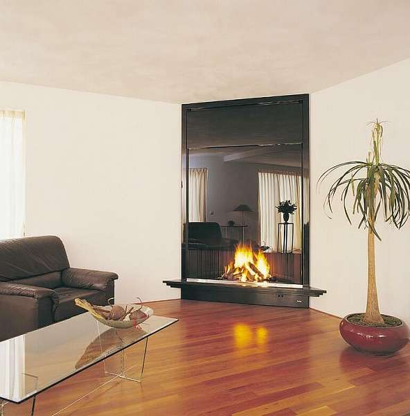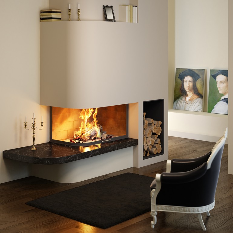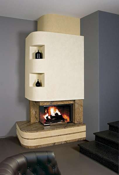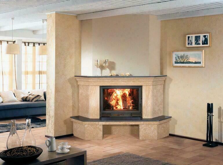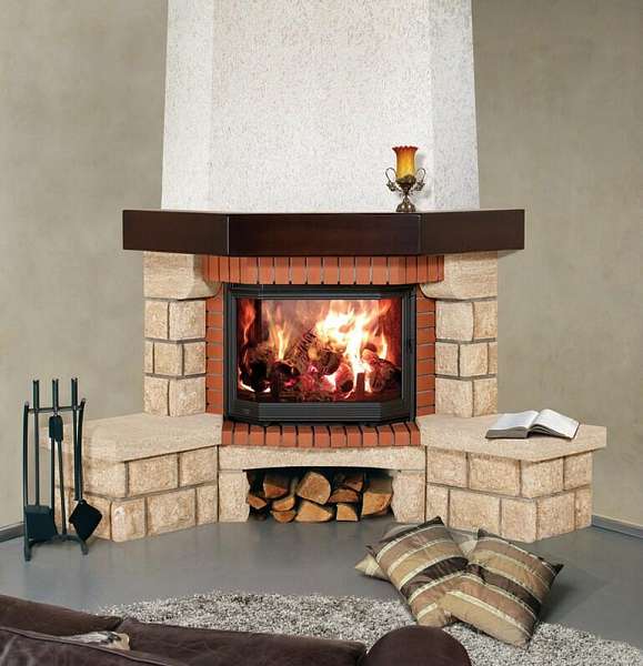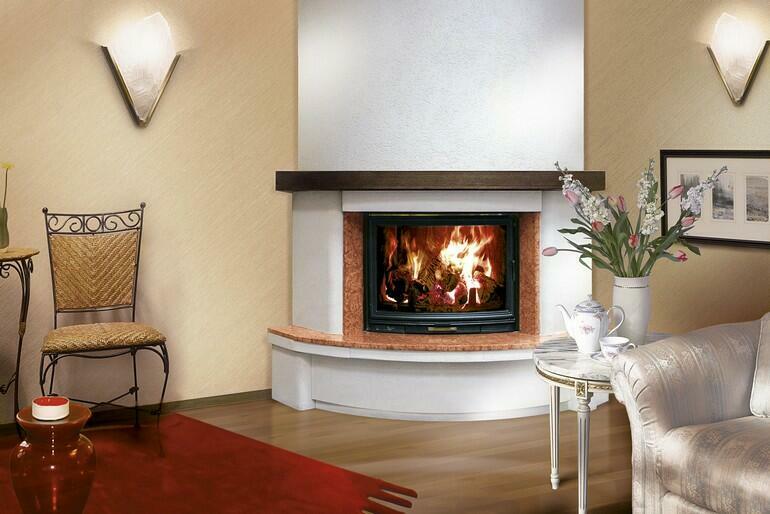 Камин, размещенный в углу, хорошо прогревает помещение. Тепловые лучи распределяются не на 180 градусов (как у приставных моделей), а всего лишь на 90. Поскольку любой камин направлен на локальный обогрев, то угловые модели выигрывают в плане дальности (расстояния) нагрева от очага. Благодаря этому, чувство тепла и уюта вы будете ощущать и на расстоянии нескольких метров. Как итог, можно с уверенностью сказать, что угловые камины это: