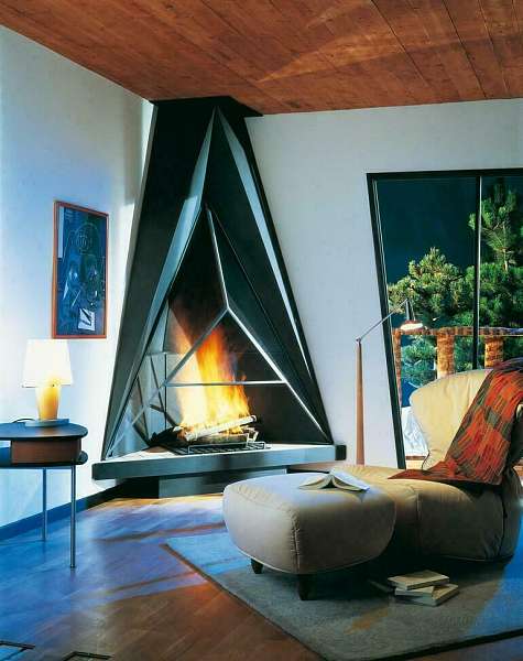 Угловые камины имеют широкий угол обзора. Горящий очаг можно лицезреть с любой точки комнаты.
