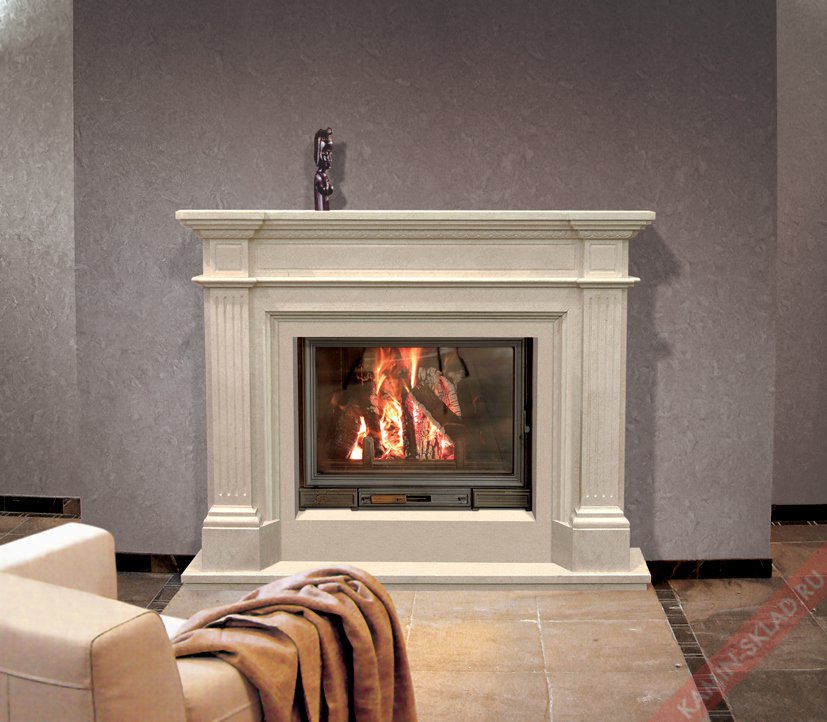 Сдержанность художественных деталей, прямые линии делают этот каминный портал идеальным решением для стильного современного интерьера. Наличие боковых колонн делает легкий намек на античность, поэтому облицовка будет достойно смотреться и в классической гостиной.