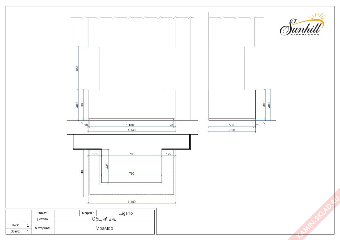 Массивности этой модели добавляет мрамор Matrix с оригинальным рисунком в виде мазков. Существует возможность самостоятельно выбрать материалы для данного каминного портала. Облицовка Lugano займет почетное место в строгом респектабельном интерьере.
