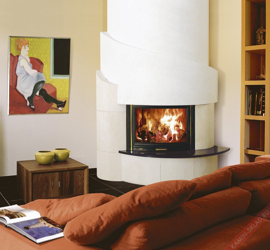 Облицовка Monreal имеет угловое исполнение и предназначена для топок с полукруглым фасадом. Выступ имеет оригинальную окружную форму. В солидном цельном основании нет никаких ниш и выемок. На основании расположен выступ в виде аккуратной полки, на которой предусмотрено место для топки, окаймленной двумя оригинальными боковыми колоннами. В дизайне присутствуют еле заметные нотки асимметрии.