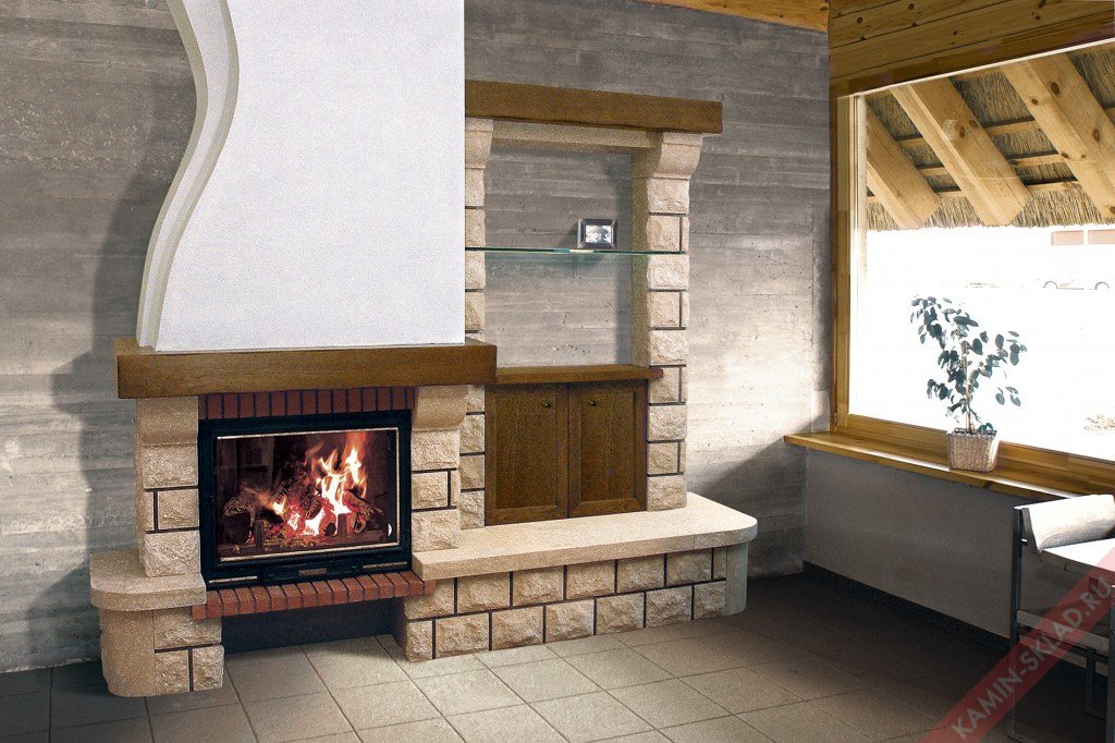 · Функциональность – модель объединяет в себе портал для камина, нишу для дров, большую деревянную полку, вместительный шкафчик и небольшую стеклянную полочку.