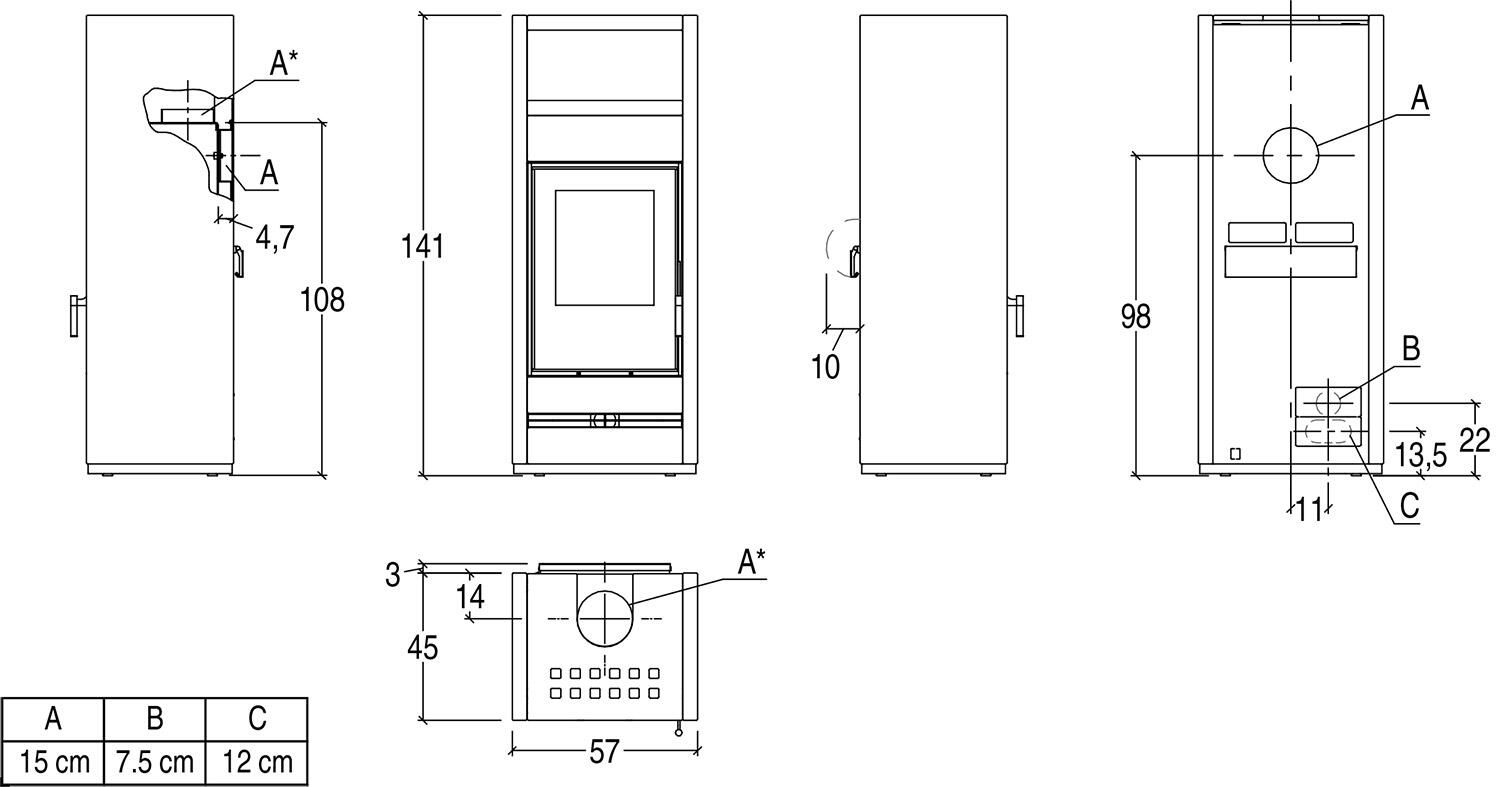 Высота, см 141 Ширина, см 57 Глубина, см 45 Мощность, кВт 5,5 - 11,1 Форма стекла Прямое Материал Сталь+Чугун+Керамика Диаметр дымохода, мм 150 Вес, кг 260 Отапливаемая площадь, кв.м. 90 Духовка Есть -