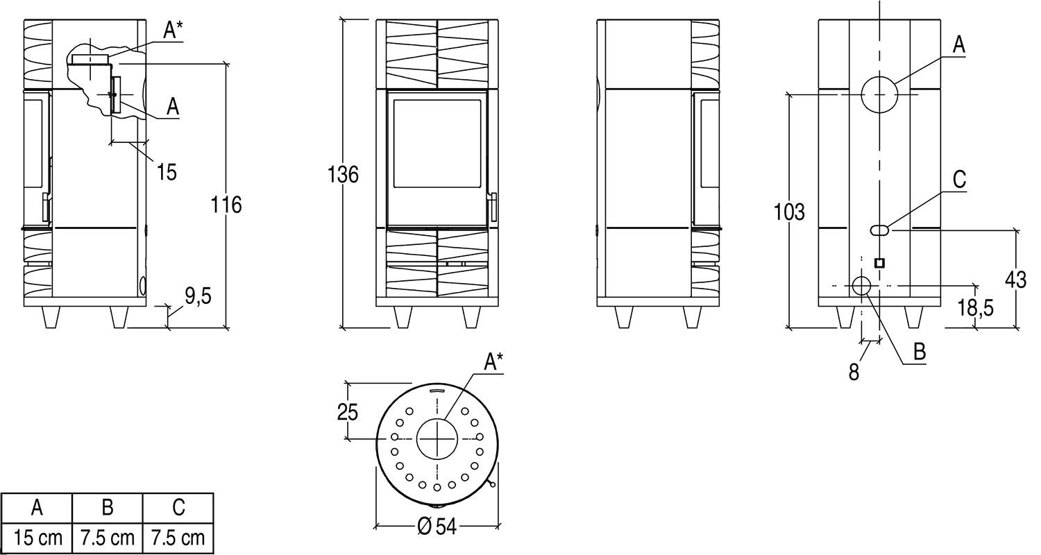 Высота, см 136 Ширина, см 54 Глубина, см 54 Мощность, кВт 7,7 Форма стекла Круглое Материал Сталь+Чугун+Керамика Диаметр дымохода, мм 150 Вес, кг 170 Отапливаемая площадь, кв.м. 100 Духовка Нет -