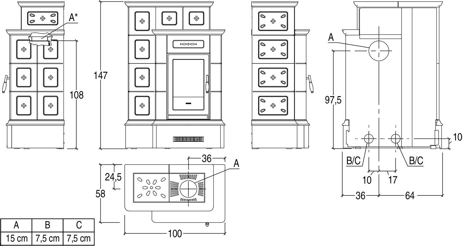 • Чертеж для Кафельная печь Stubotto ORTISEI